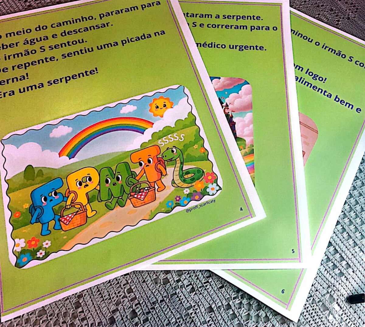 “O irmão S vive uma grande aventura e descobre que sua fala esconde segredos! Entre sons de serpente, zumbidos e SS, as crianças aprendem brincando. Um material perfeito para explorar leitura, escrita e fonemas.”